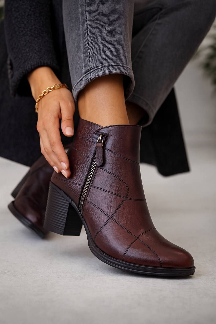 بوت چرم طبیعی پاشنه ۵ سانت
