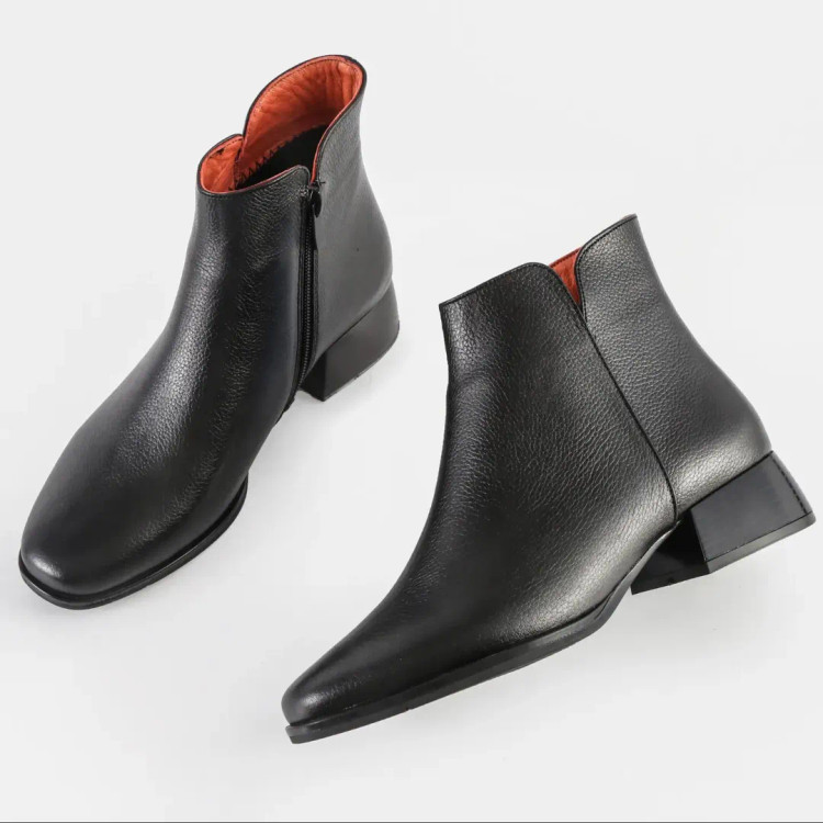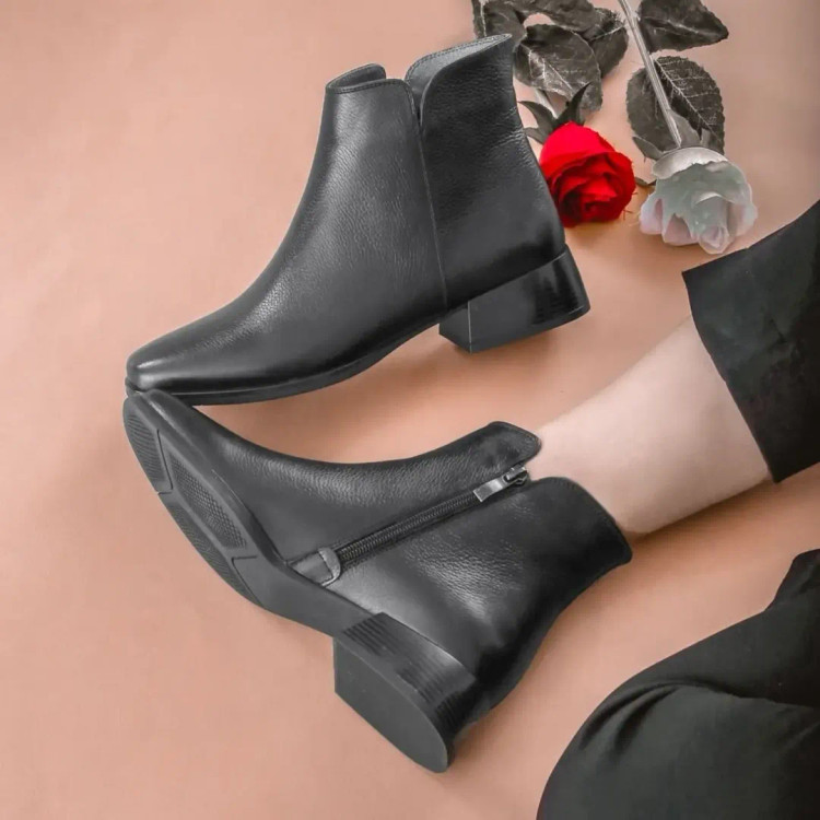 بوت تمام چرم ورق بزنید بوت تمام چرم ساق کوتاه با یک استایل رسمی پاشنه ۴ سانت تمام بوت از بهترین نوع چرم طبیعی گاوی تبریز زیره بوت از جنس لاستیک ضد سایش و مناسب برف و بارون و یخ قالب بسیار راحت با پنجه پهن برای استفاده طولانی در روزمره رنگ موجود مشکی سایز بندی ۴۱ بوت تمام چرم
