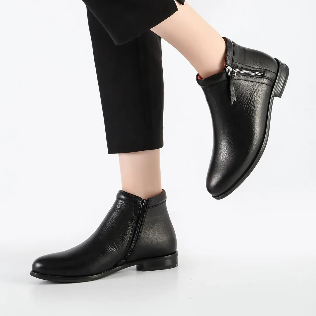 یک مدل شیک و کاربردی برای تمام فصول، تهیه شده از بهترین نوع چرم طبیعی گاوی تبریز، زیره بوت لاستیک ترک با پاشنه کوتاه ۲ سانت.